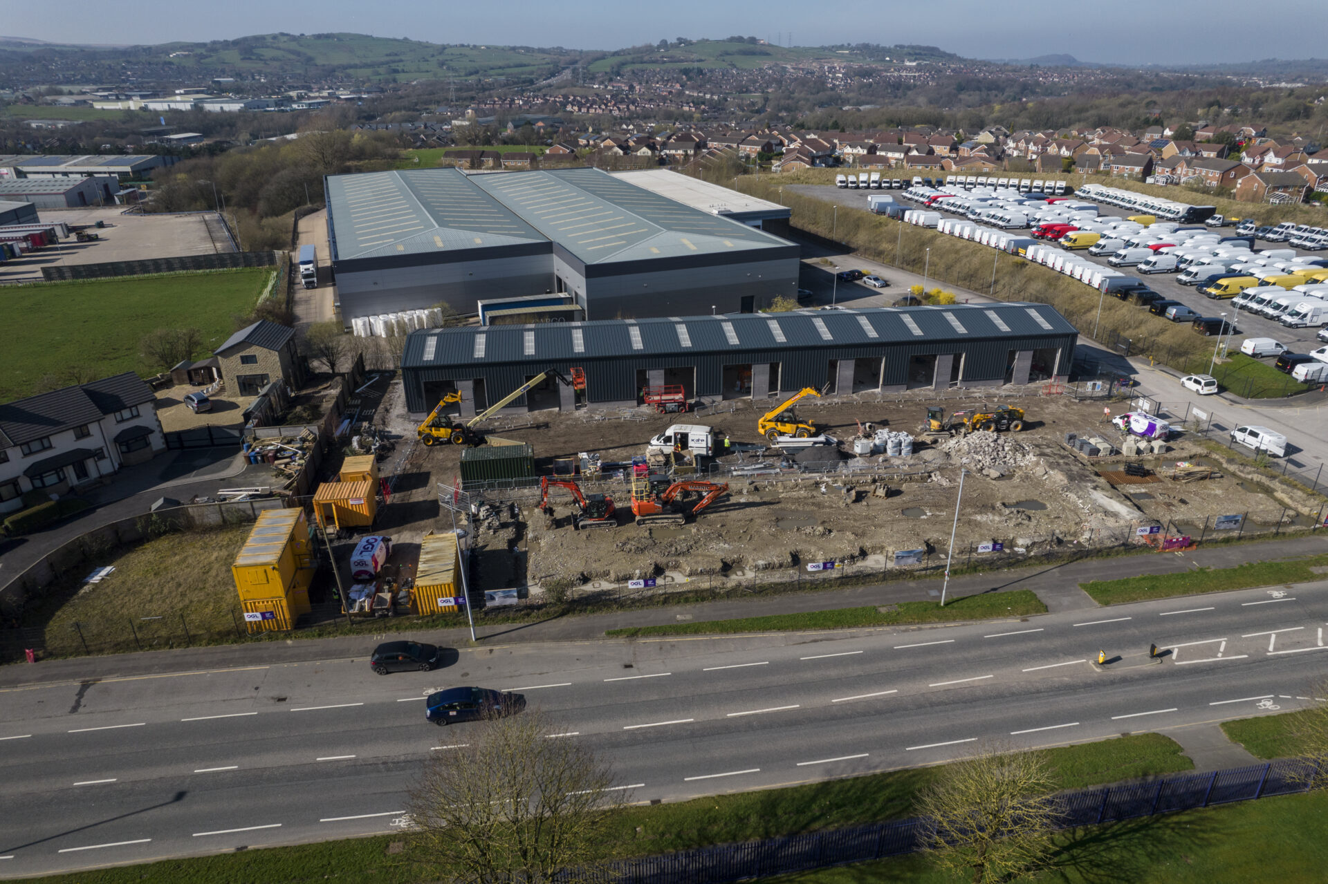 The units are being constructed with robust and sustainable materials, including an engineered brick plinth, Kingspan Quadcore wall panels, aluminium doors and glazing, and insulated panel roofs fitted with rooflights and solar panels to enhance energy efficiency.